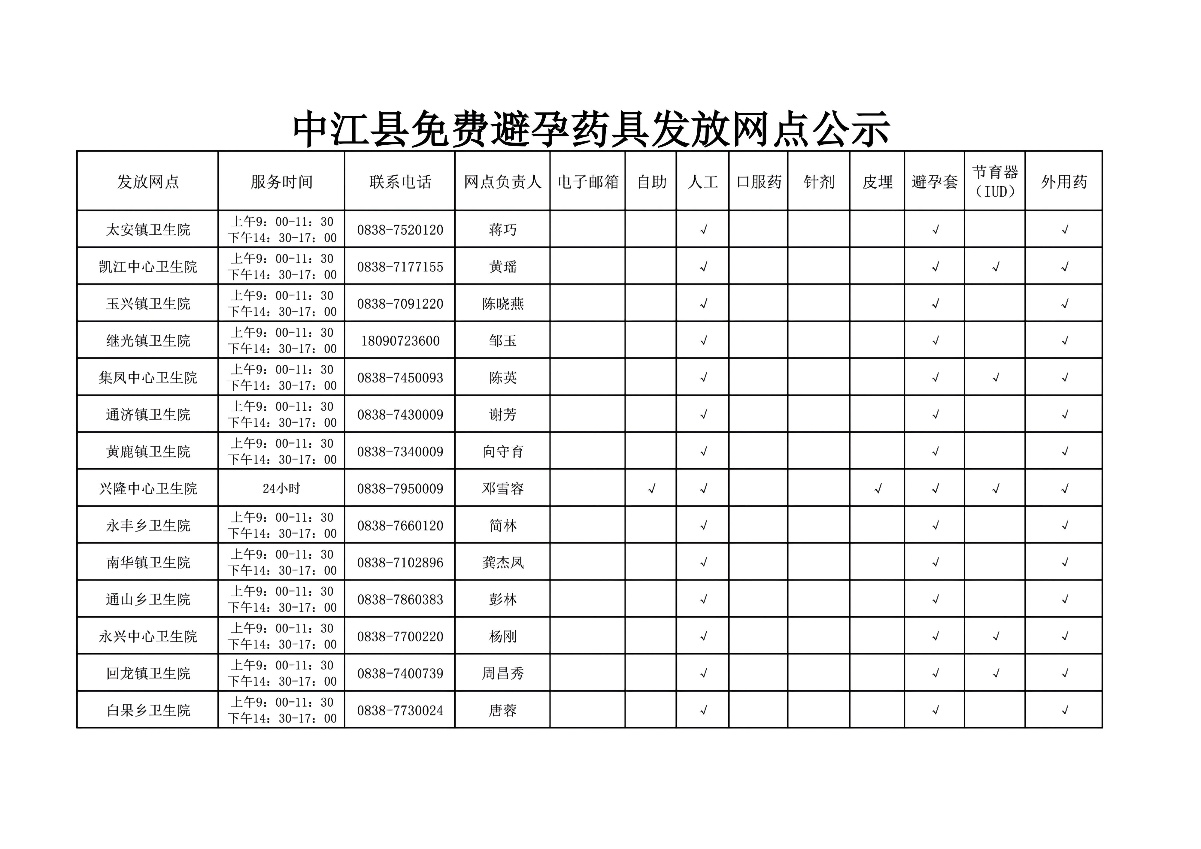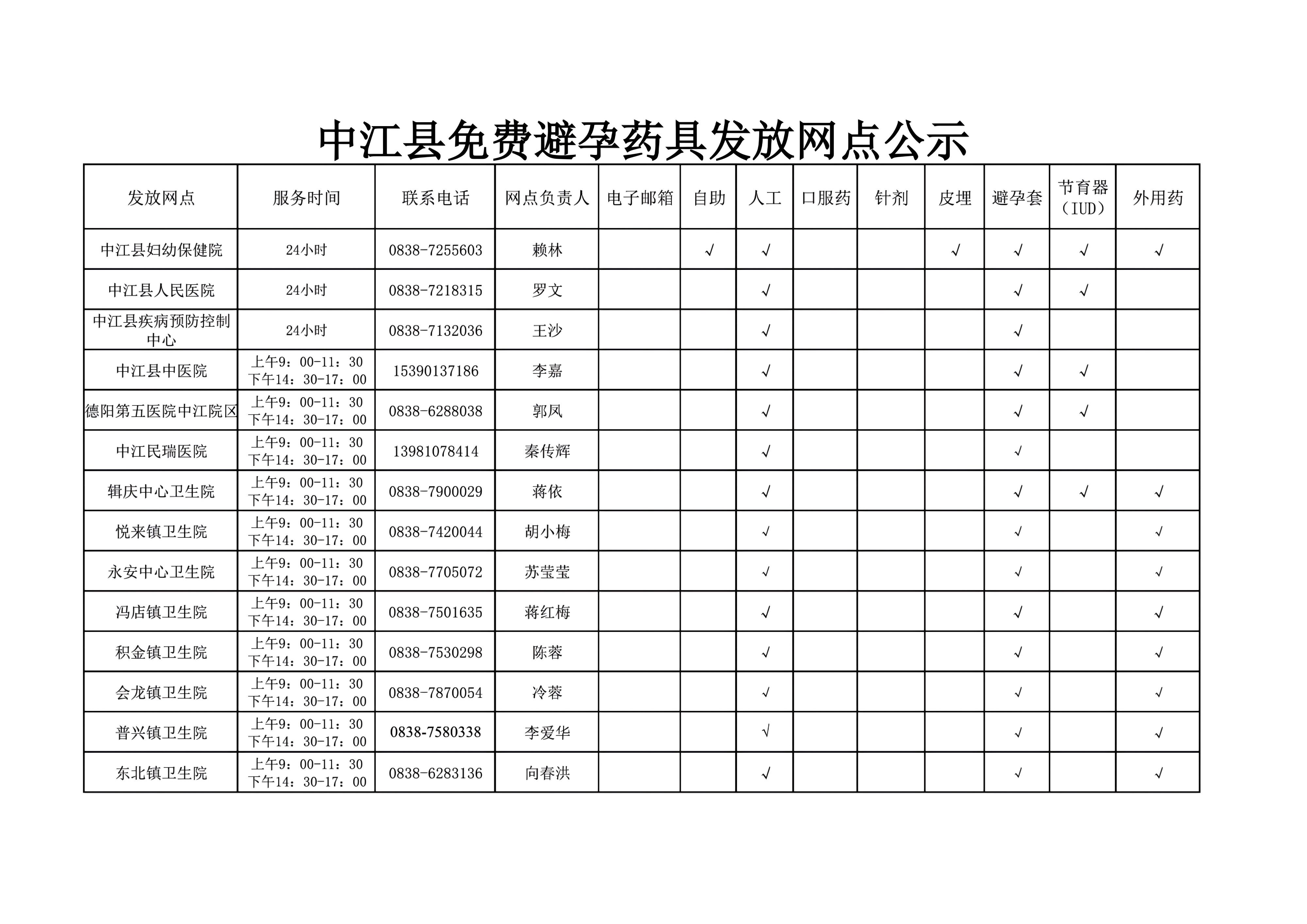 中江县免费避孕药具发放网点公示2024